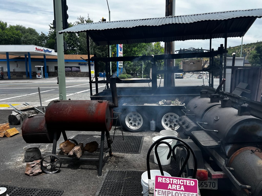 As I entered Weed, CA I was thinking about lunch. All I could smell was a smoker and looked over and there was a guy in front of a random old gas station smoking meat. So I spun around and entered the “Asian BBQ”. The owner(one man show) asked if I knew what I wanted or would take a suggestion. He suggested the ribs because they were about ready and I wouldn’t have to wait. Sold. The BBQ was good and came with sticky rice because that is what he had. I sat outside by the smoker for a bit and ate and trying to decide if I was going to be able to side trip to Crater Lake. Eventually, I decided to not decide until I was at the junction, I geared up and started riding. Last trip I had troubles with after lunch sleepiness so I wanted to see if that was going to happen again. Luckily it did not.