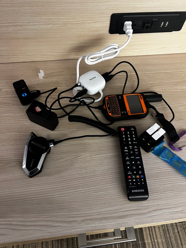 I settled back in the room and set out to get my charging down. The one thing I miss about my old setup was it all ran from the bike. there was no charging needed. However, now I have cameras, my SPOT needs to be charged and I have two headsets along with my phone and my iPad. I did buy a nifty charger for the trip which seems to have been a good purchase.