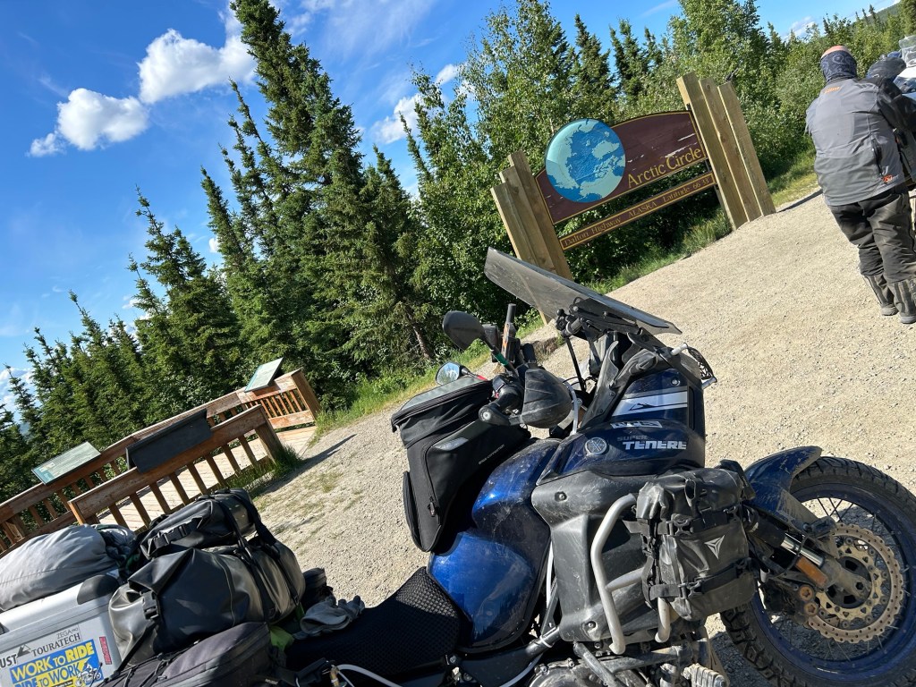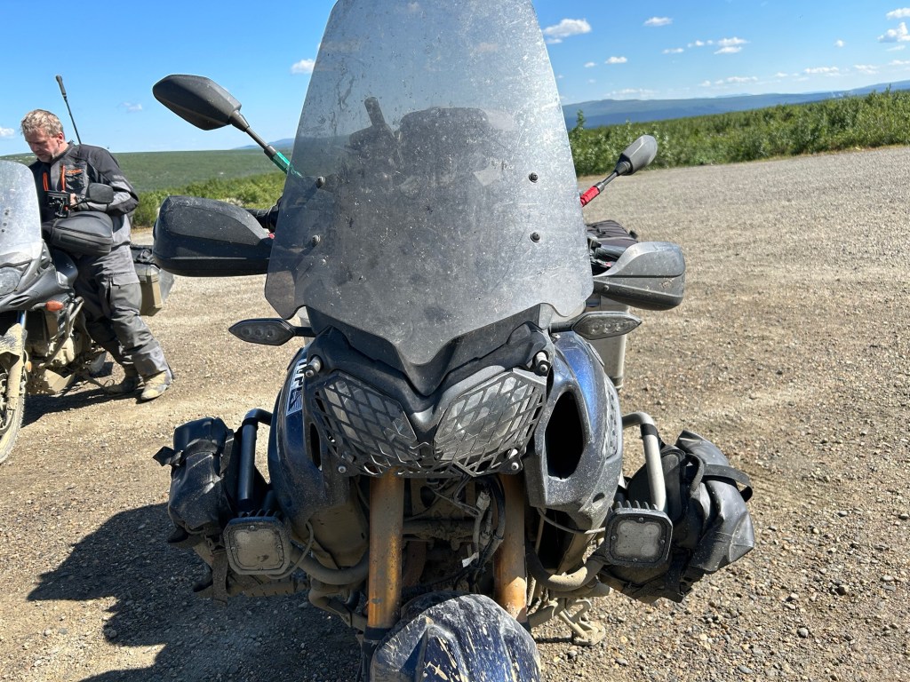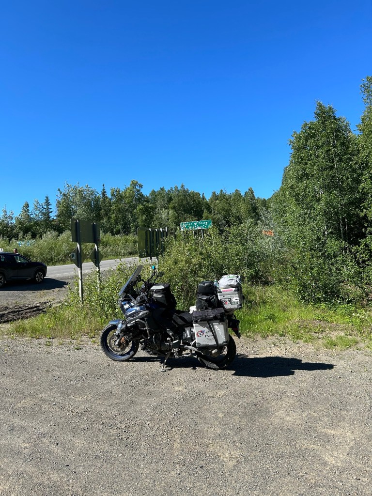 Yesterday I discovered a headlight bulb out so we started with a trip back a few miles into Fairbanks for fuel and auto parts. At some point we decided to plan to cook tonight so we needed ingredients and a shopping trip was necessary. With that, we got food, fuel and bike repair parts before getting underway about 0915.