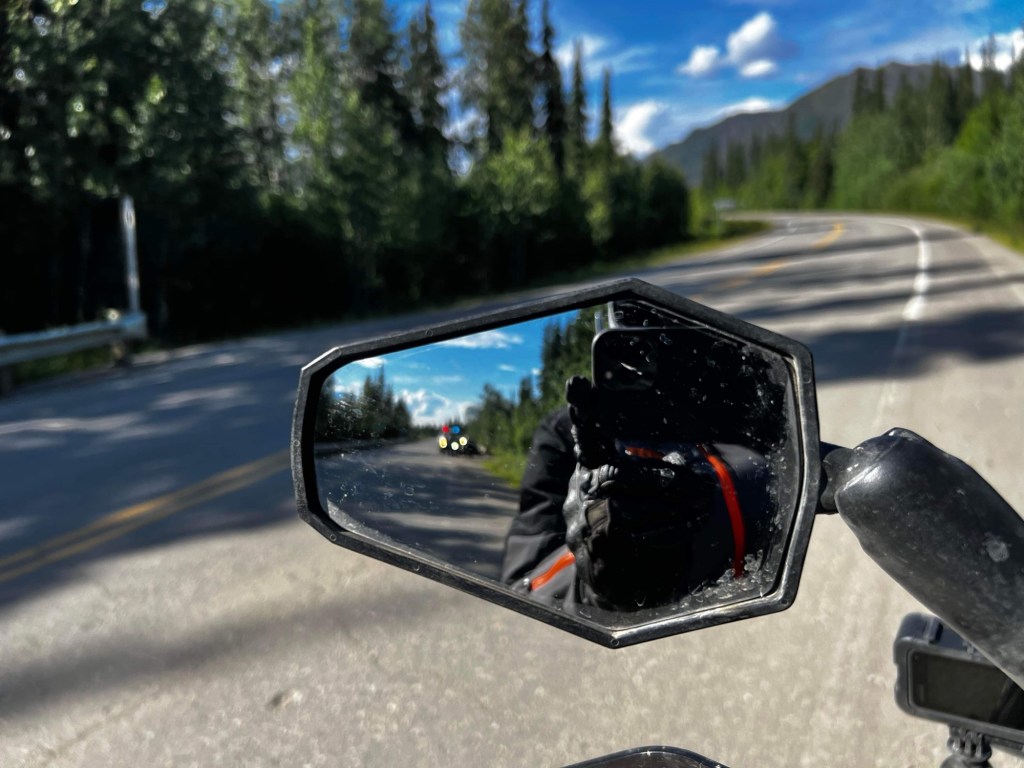 Then I managed to blow a headlight fuse installing the new bulb. Then an Alaska State Trooper stopped me to discuss the merits of always running headlights and carrying an expired insurance card.