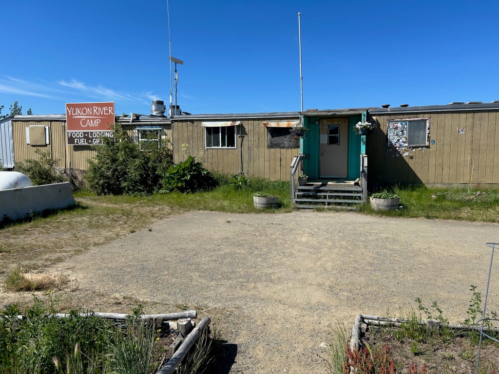 We arrived at Yukon Camp after crossing the might Yukon River on a massive wooden bridge. Yes, the wooden bridge had potholes too! When I get my act together and get to editing the Insta 360 videos we’ll be able to share what it looks like, but I’m sure it won’t be the same as being there in person.