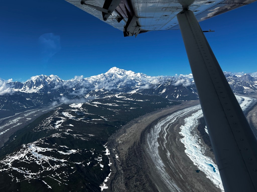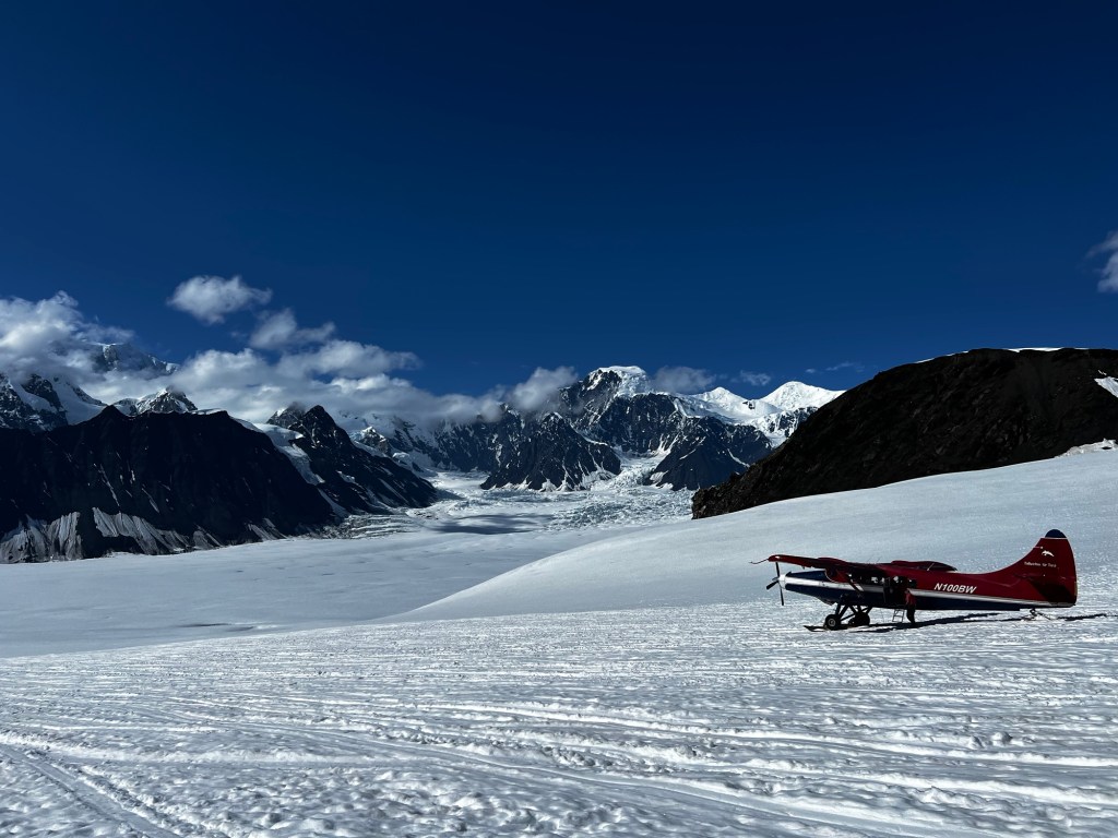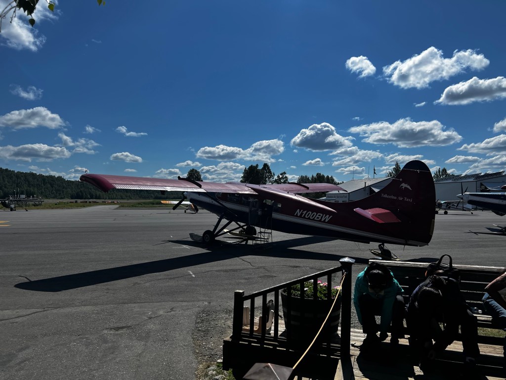 Anyway, on to the cool stuff. We arrived at the Talkeetna Air taxi on time for our flight. They weighed is and gave us some gore Tex booties to go over our feet. Then we got to see the planes. These were from the 50’s and retrofitted with Turbo props.