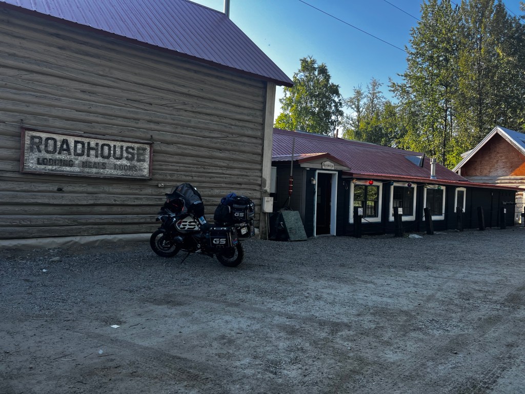 Once fed, we hung out on the porch for a bit making plans for tomorrow. At minimum a duo is taking off to get an early start to make it to the Wheelers of the Yukon for a tire. I told the boys, if Im not ready go. I will either catch up and meet you there. I love the comradery of no man left behind, but in this case we are not out in the lesser traveled areas and I am used to traveling solo so I would rather they leave me behind and me not hold them up.
