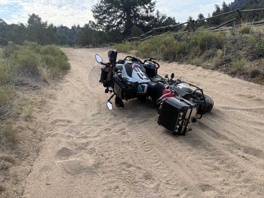 So, we set out to leave at 7 and got out at 7:30 to ride our very large Adventure motorcycles on section 4 of the Colorado BDR. (See above mentioned label).